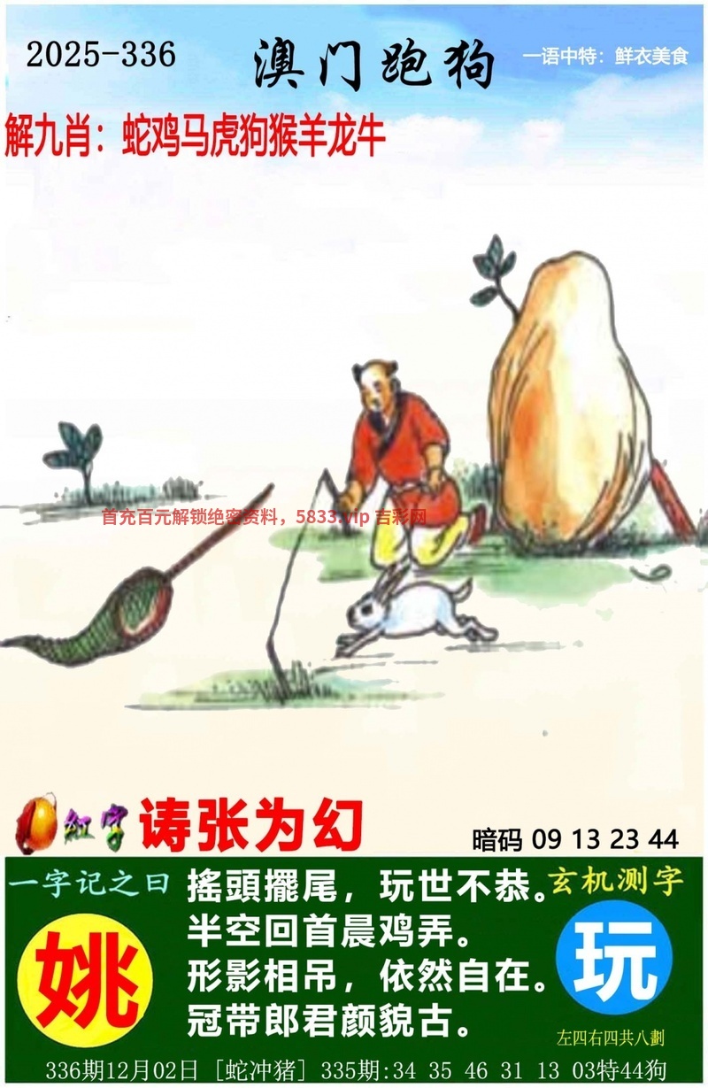 | 335期:⑦肖 | 鸡羊兔牛狗虎鼠 | 开:狗44 |