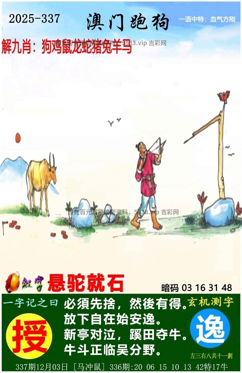 | 336期:⑦肖 | 羊鸡马兔猪牛蛇 | 开:牛17 |