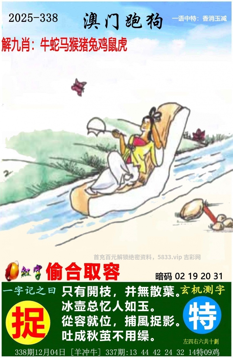 | 338期:⑦肖 | 蛇鸡羊龙兔牛狗 | 开:狗08 |